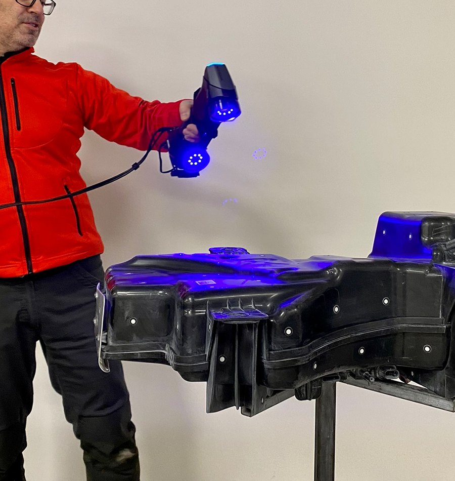 Controllo geometrico su componenti in materiali compositi, verifica delle superfici, spessori e deformazioni post-stampaggio.