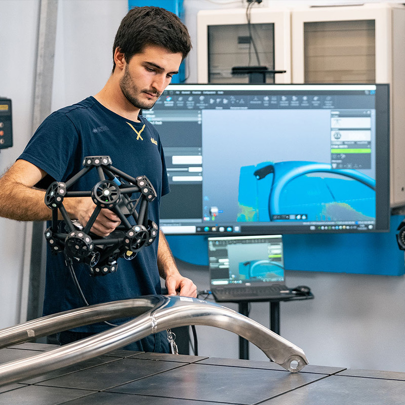 Essendo fornitore di componenti per l’industria automobilistica e i settori aerospace e difesa, Dallara aveva la necessità di validare la corrispondenza esatta tra i componenti e le loro specifiche tecniche. Era quindi fondamentale avere uno strumento preciso, accurato e maneggevole per ispezionare componenti dalle geometrie complesse, anche in situazioni di sottosquadro, dove l’operatore deve poter movimentare lo strumento di misura in spazi ristretti. Questi componenti riguardano tanto l’abitacolo dei veicoli, quanto altre parti della scocca, la cui accuratezza dimensionale è fondamentale per assicurare elevati standard di sicurezza e di aerodinamica.